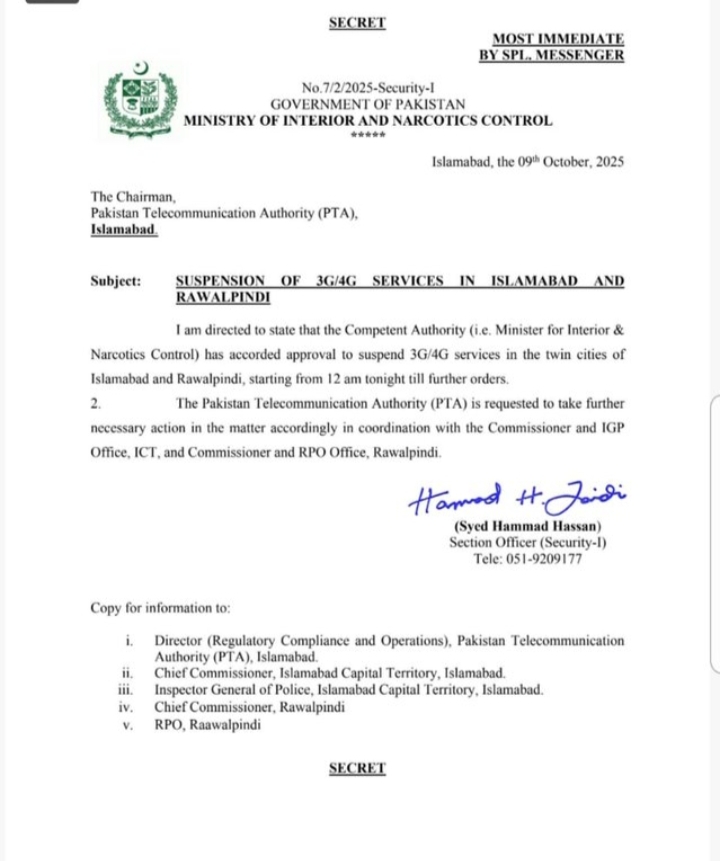 اسلام آباد اور راولپنڈی میں غیرمعینہ مدت تک موبائل انٹرنیٹ سروس معطل کر دی گئی